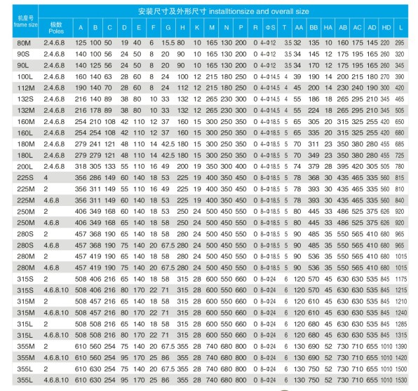 YX3-315L1-8-90KW YX3-315L2-8-110KW YX3-355M1-8-132KW